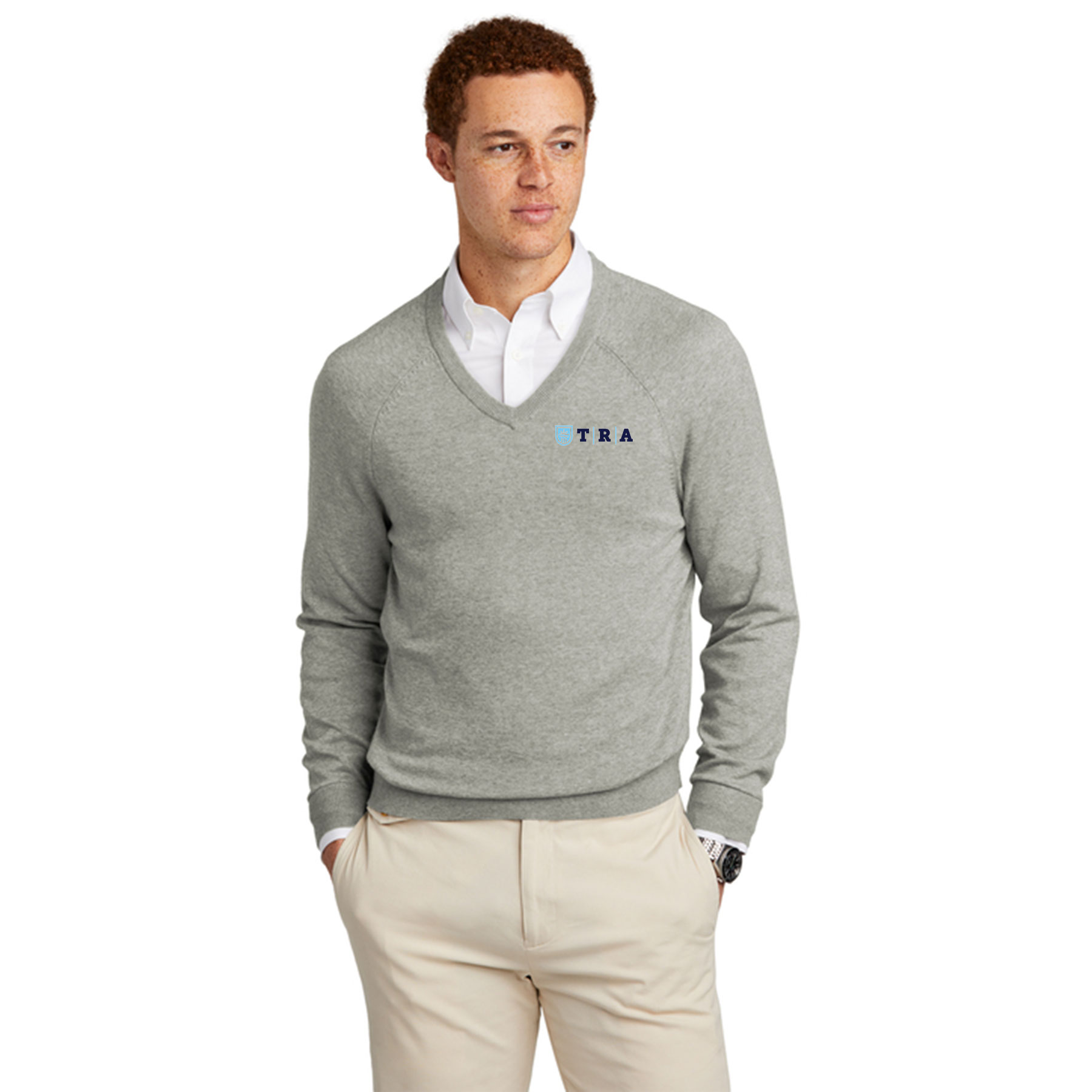 Uniform BB18400 - Brooks Brothers® Cotton Stretch V-Neck Sweater - Light Shadow Grey Heather