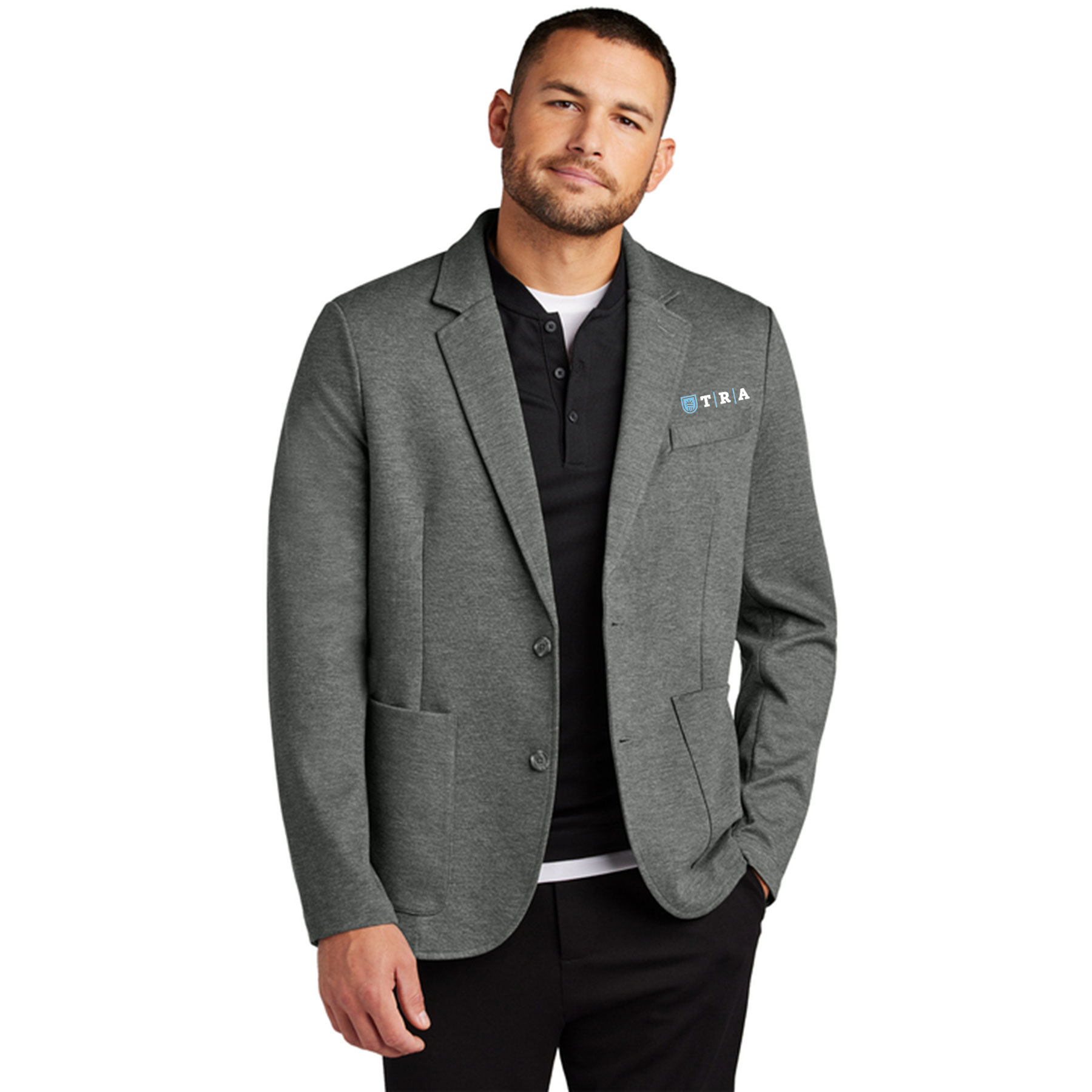 A classic silhouette and timeless design, this sophisticated blazer is a wardrobe staple that will never go out of style. Designed with comfort in mind, the snag-resistant double knit pique fabric will move with you throughout the day for a polished and professional look no matter what the occasion.Designed with a modern fit—tailored through the chest, armholes and sleeves. Consider sizing up for a more traditional fit.