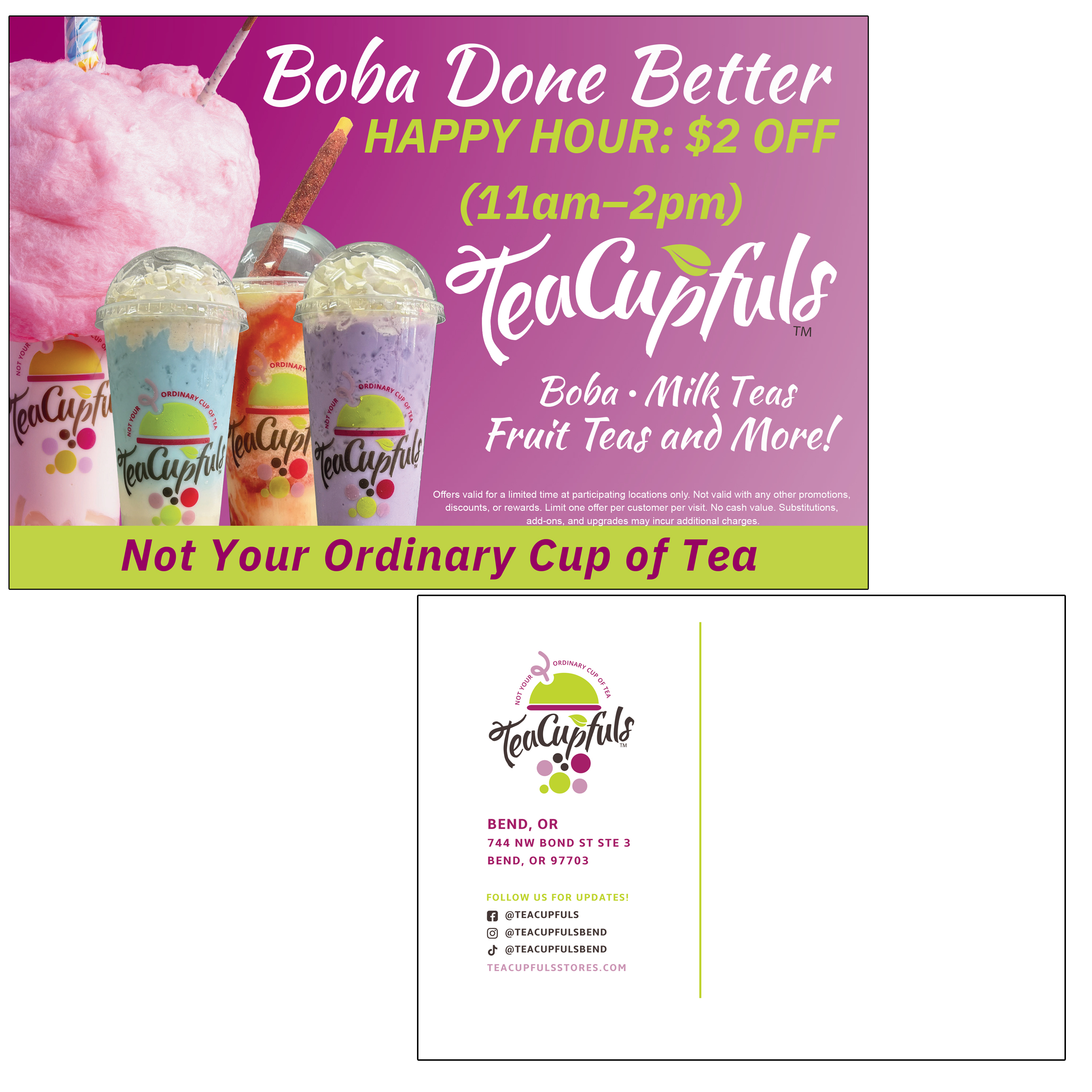 Boba Done Better Postcard - Happy Hour (6" x 9" - Purple/Green Background)